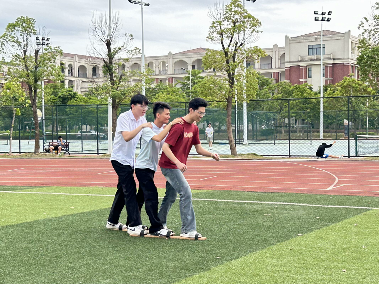 活动前,党支部书记黄海嫚着重强调此次活动的目的与意义,指出要以此次活动为契机,弘扬少数民族优秀传统文化,铸牢中华民族共同体意识。活动精心设置了背箩绣球、三人板鞋竞速、蒙眼击鼓三项富有民族特色的竞赛项目。背箩绣球比赛中,队员们默契配合,精准投接,战术呼喊此起彼伏;三人板鞋项目中,六人分两组协力竞速,在口号声中齐步奋进;蒙眼击鼓环节趣味十足,选手们转圈寻鼓,不时击空的场面引来阵阵欢笑。经过激烈角逐,活动最终评选出一等奖1组、二等奖2组、三等奖2组。
